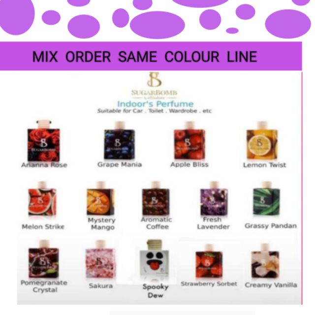 SUGARBOMB Indoor Perfume / Air Freshener / Pewangi Kereta ... from cf.shopee.com.my Nov 02, 2018 · kami pasti, semua pembaca kami termasuklah sk sendiri sukakan kebersihan dan sesuatu yang berbau wangi. Produk ni dikatakan mampu neutralise bau dalam kereta dan buatkan kereta wangi tanpa sebarang pewangi tambahan. Boleh juga diganti dengan hirisan daun pandan. May 27, 2020 · rm16.89. Seperti yang tertulis pada namanya, pewangi ini dirumuskan dari ekstrak vanilla dan diperkaya dengan haruman sitrus. Rekabentuknya unik dan memberikan imej dalaman kereta lebih menarik. Di sini kami senaraikan 5 jenis perfume kereta paling wangi yang dikeluarkan oleh de'xandra. Apr 17, 2020 · minyak wangi kereta kedua ialah vanilla fresh.