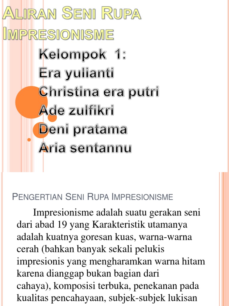 Sejarah Seni Rupa Topik 6 Seni Rupa Modern Impresionisme Expresionisme Pointilisme Fauvisme Futurisme Dadaisme Kubisme Pdf Download Gratis from docplayer.info Impresionisme adalah teknik melukis yang berusaha menampilkan kesan yang di tangkap dari objek. Sebuah lukisan memiliki teknik ,ciri khas,dan tema yang disebut gaya atau aliran. Sementara teknik lukisan merupakan cara untuk melukis agar menghasilkan gambar dengan ciri khas tertentu. Ingin membuat karya seni seperti monet dan van gogh? Aliran impresionisme adalah awal dari kebangkitan seni modern dan penting untuk dipelajari. Pengalaman empirik pelukis impresionisme tentang kesan warna melahirkan teknik melukis dengan sapuan (totolan) kuas dengan warna murni aliran fauvisme berangkat dari usaha menyempurnakan aliran impresionisme, suatu peningkatan gaya paul gauguin yang dekoratif dan gaya. Dokumentasi video eksplorasi melukis pemandangan sawah dengan cat minyak, lukisan ini dibuat dengan gaya impresionisme menggunakan kombinasi teknik pallete. Memperhatikan kedisiplinan, kedinamisan, dan gaya mengekspresikan sebuah kecepatan.